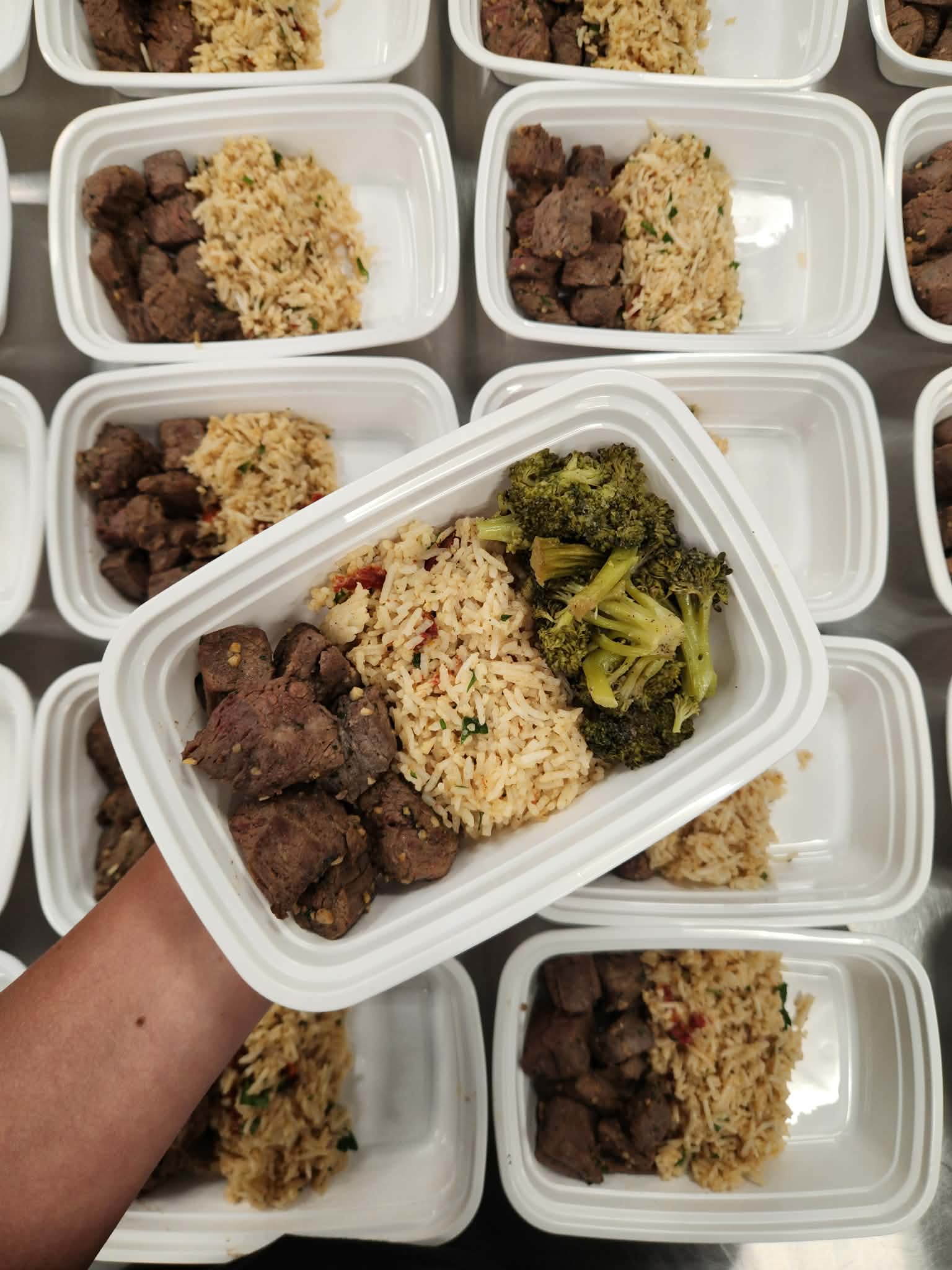 garlic butter steak bites with broccoli and tuscan style parmesan rice