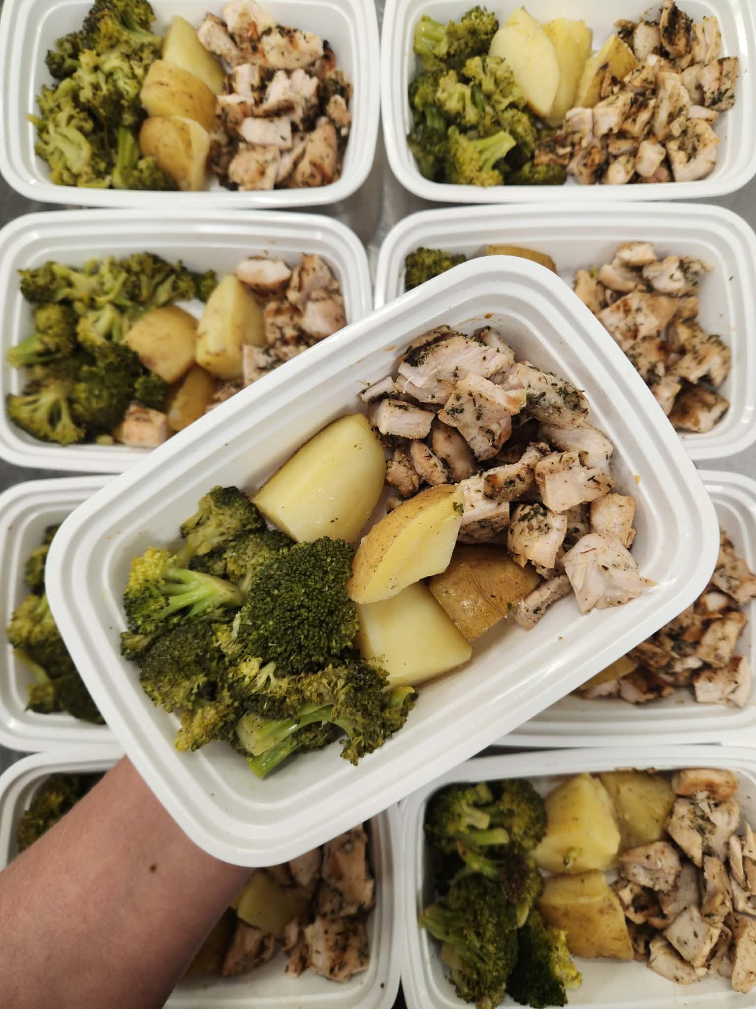 herb chicken with roasted potatoes and broccoli