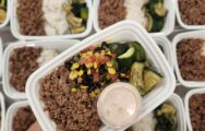 beef with house mexican seasoning blend tossed with corn, black beans, tomatoes, and green chiles served over basmati rice and topped with sour cream with a side of roasted yellow squash